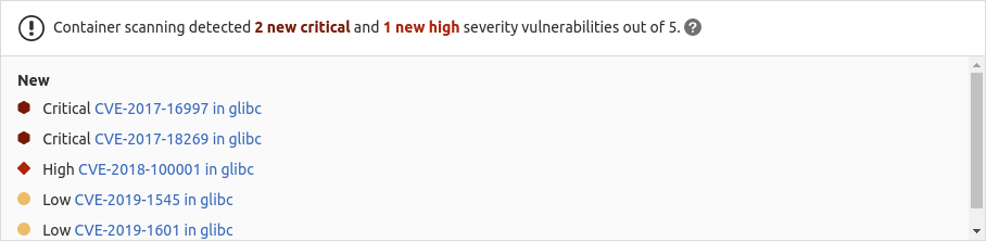 GitLab compares the found vulnerabilities between the source and target branches, then: